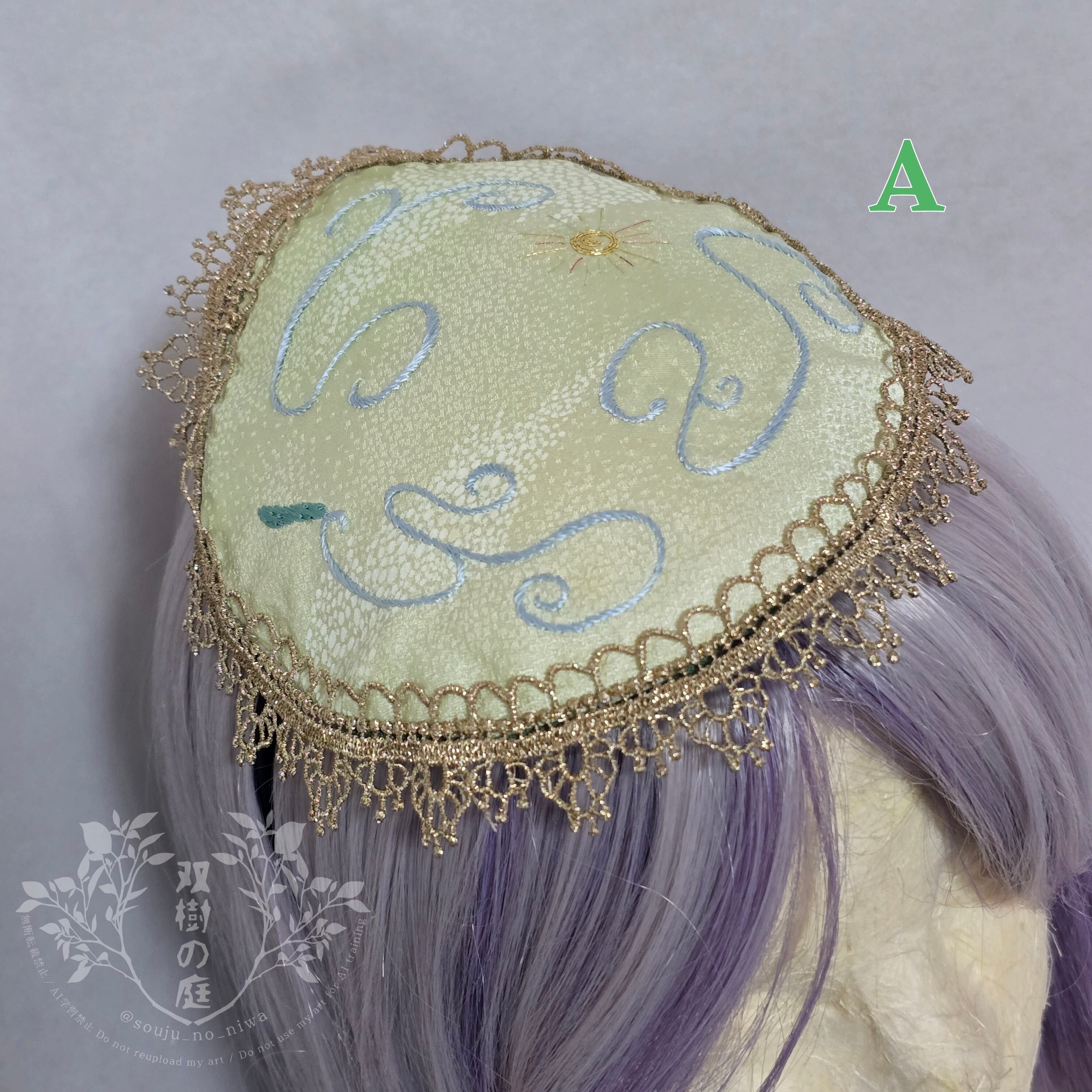 【高貴なる河童の御皿】日本刺繍の頭飾り
