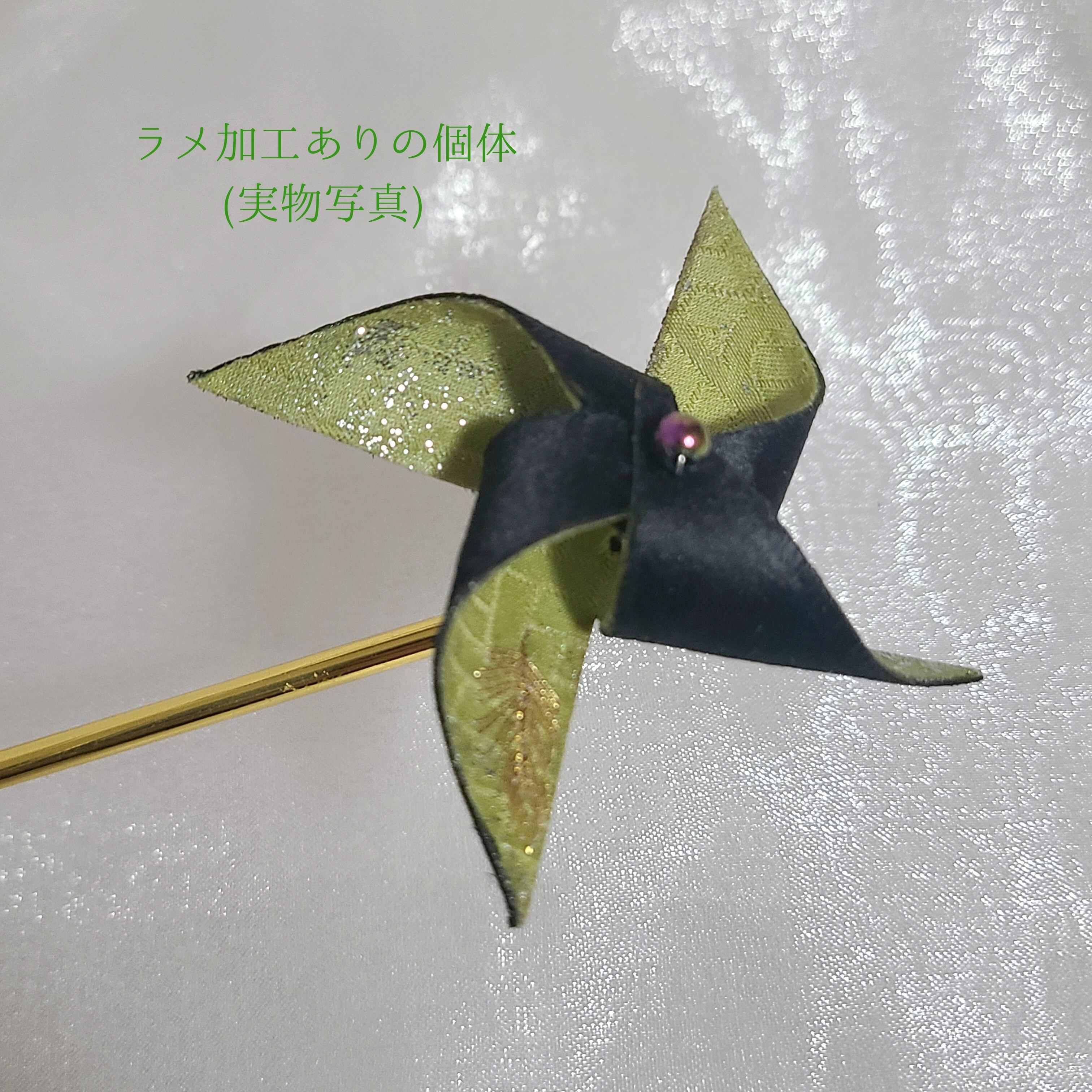かざぐるまかんざし【若草系】小サイズ/ヘアピン・ネクタイピンに変更可能