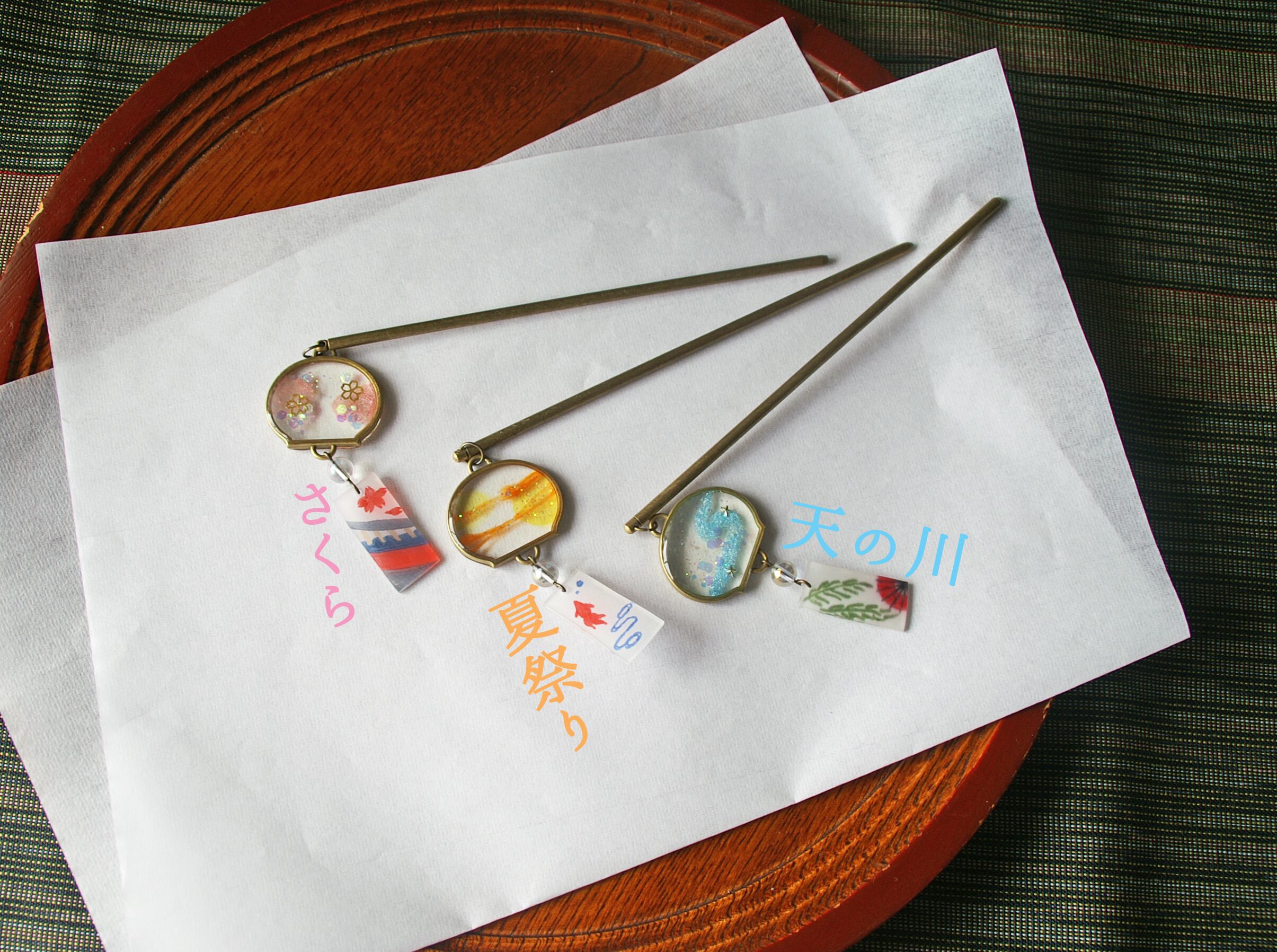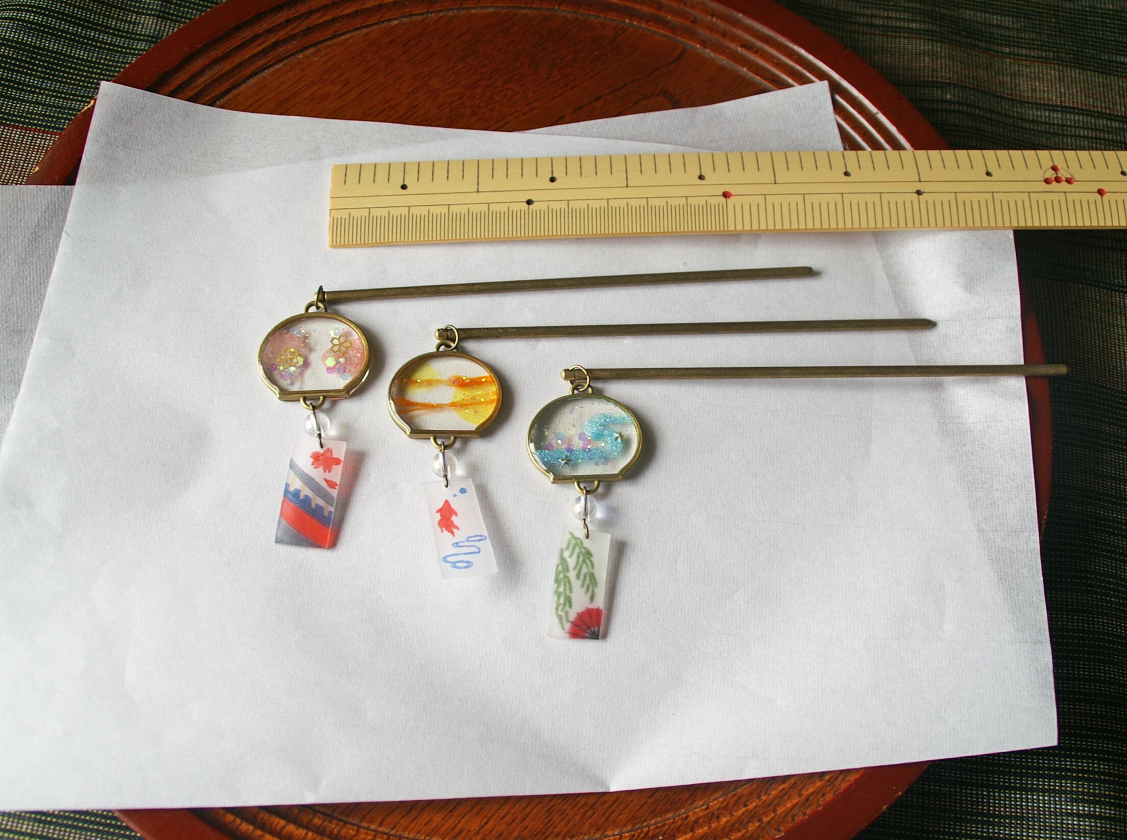 風鈴のモチーフに、3篇の物語をのせてかんざしにしました。