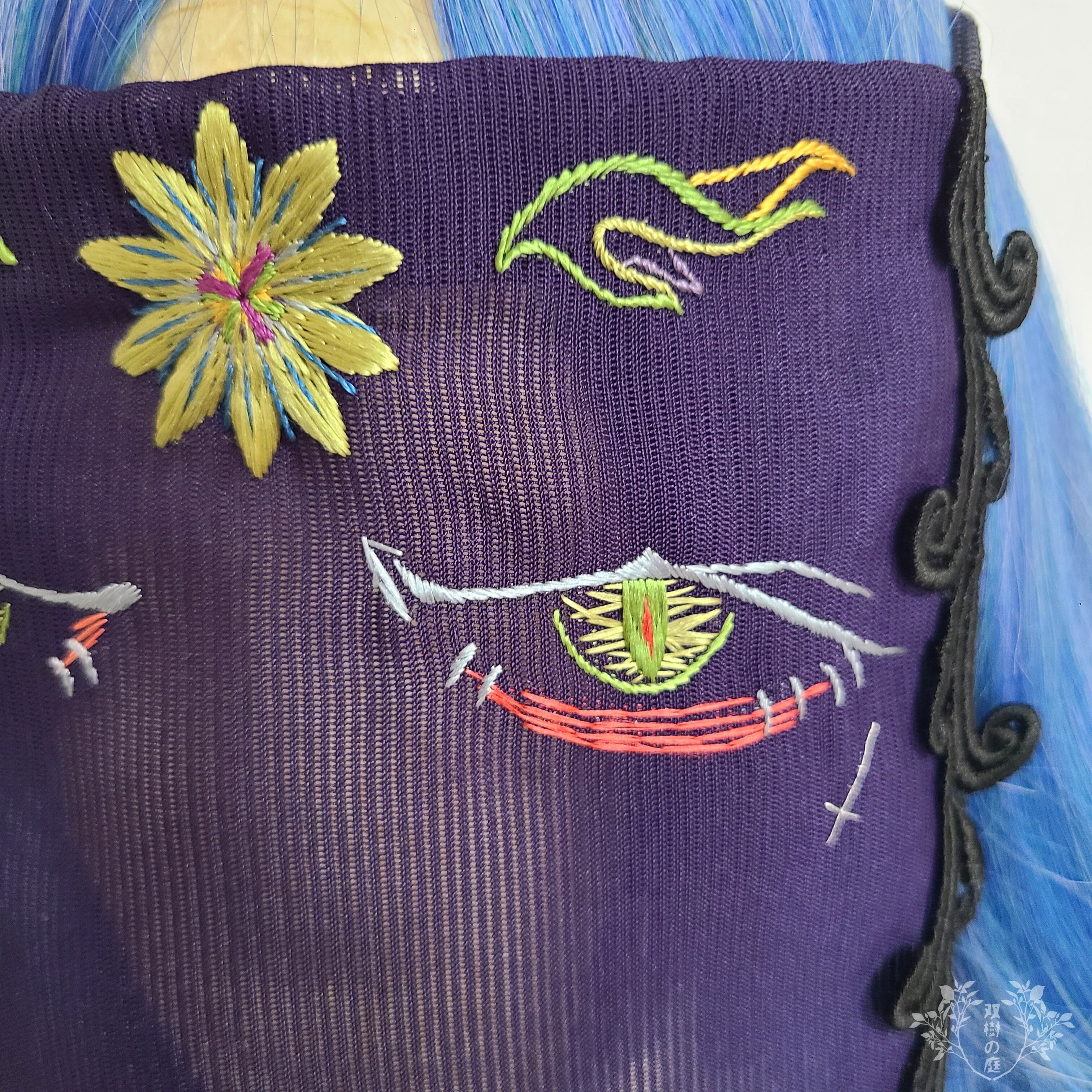 和装の夏用生地「絽」に、絹糸と銀糸で手刺繍をほどこしました。